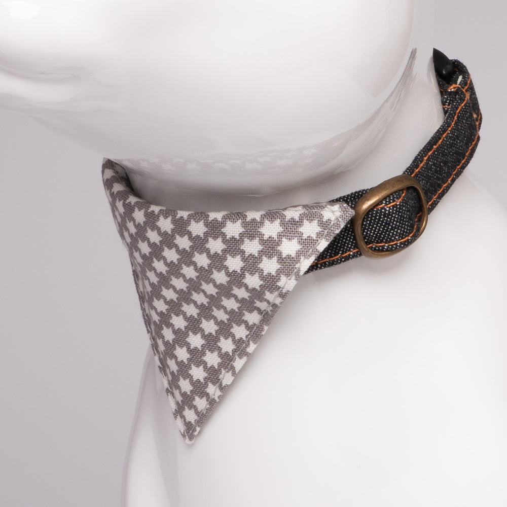 バンダナ付き猫首輪 岡山児島デニム スタードット グレー×ブラック【限定モデル】