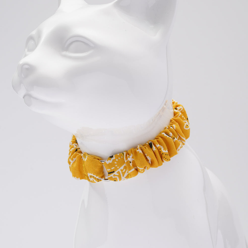 シュシュ猫首輪 ペイズリー イエロー
