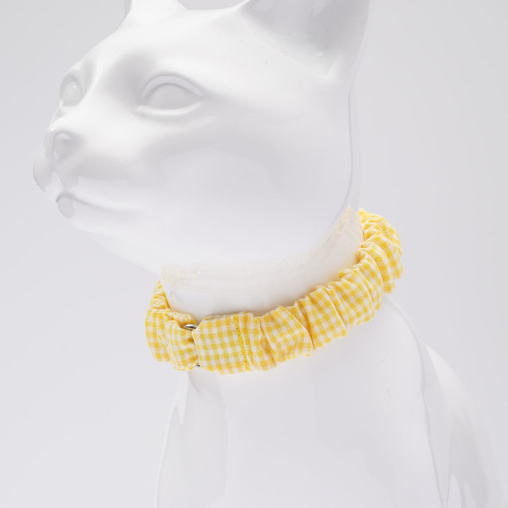 シュシュ猫首輪 ギンガムチェック レモンイエロー