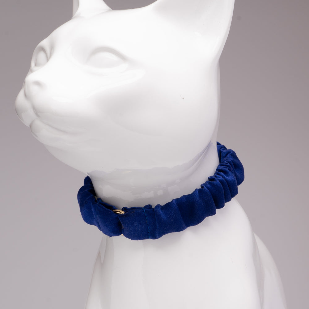 シュシュ猫首輪 シルク 無地 ロイヤルブルー