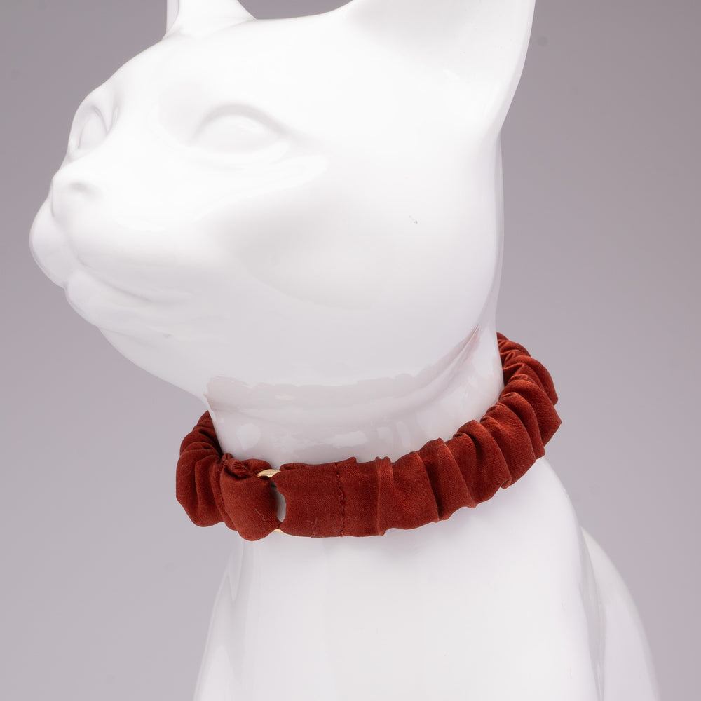 シュシュ猫首輪 シルク 無地 ロイヤルオレンジ