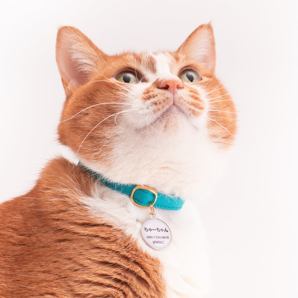 猫首輪 MUJIコットンツイル ターコイズ