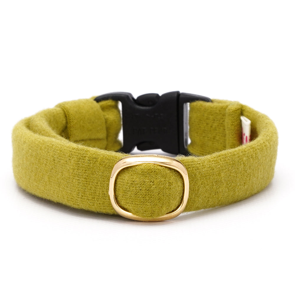 ナチュラルなグリーンが魅力の、超軽量&ストレスフリーな猫首輪です♪ 伸縮性の高い天竺素材を使用し、やさしくフィット。生地を丸めているので角がなく、皮膚や被毛への負担を軽減し、首輪ハゲも防ぎます。