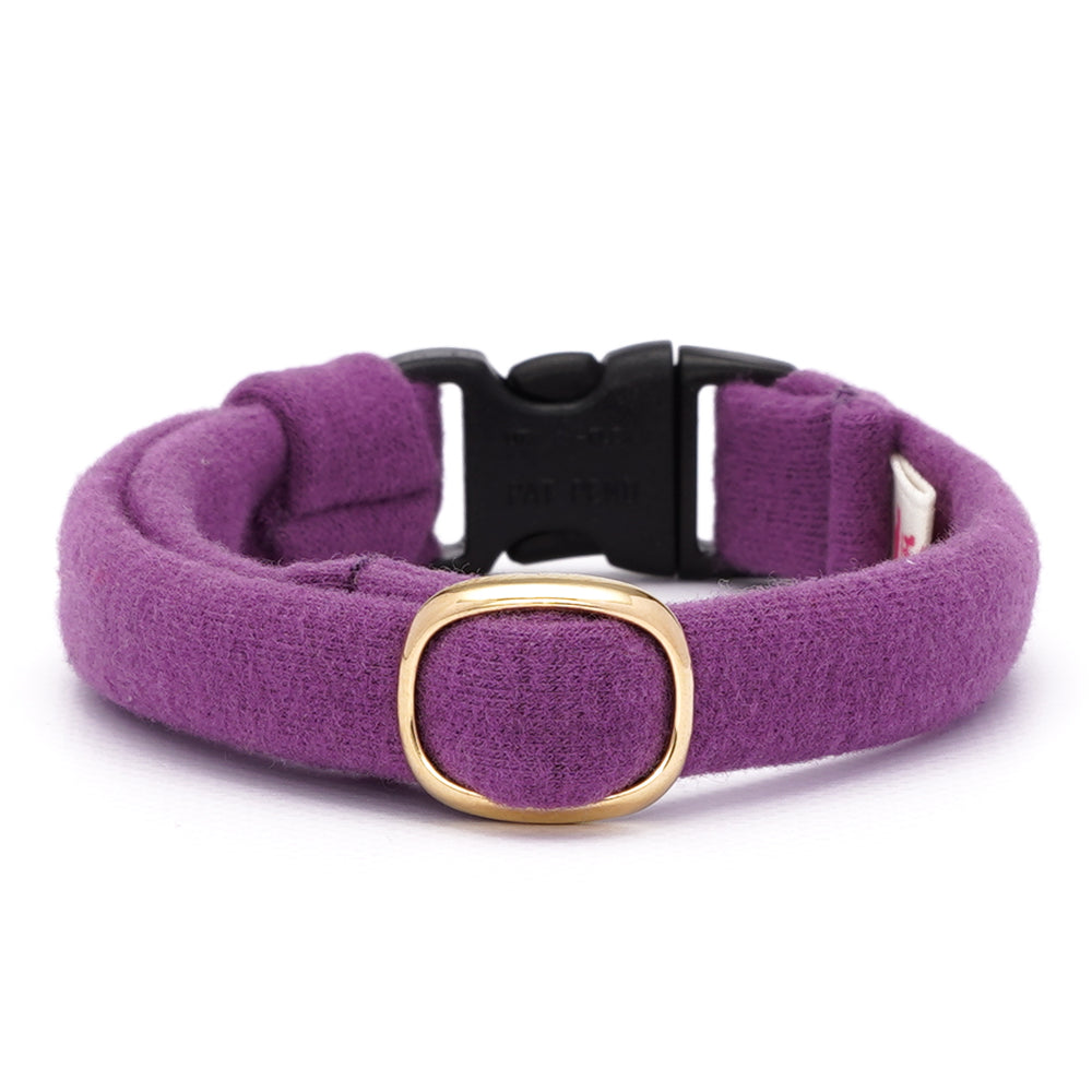 上品で落ち着いたパープルが魅力の、超軽量&ストレスフリーな猫首輪です♪ 伸縮性の高い天竺素材を使用し、やさしくフィット。生地を丸めているので角がなく、皮膚や被毛への負担を軽減し、首輪ハゲも防ぎます。