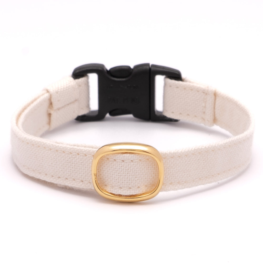 生地はオーガニックコットンを使用、さらに糸まで綿100%の猫首輪。首輪を縫う糸にもこだわって、無着色の綿100%ミシン糸を使用しました。
