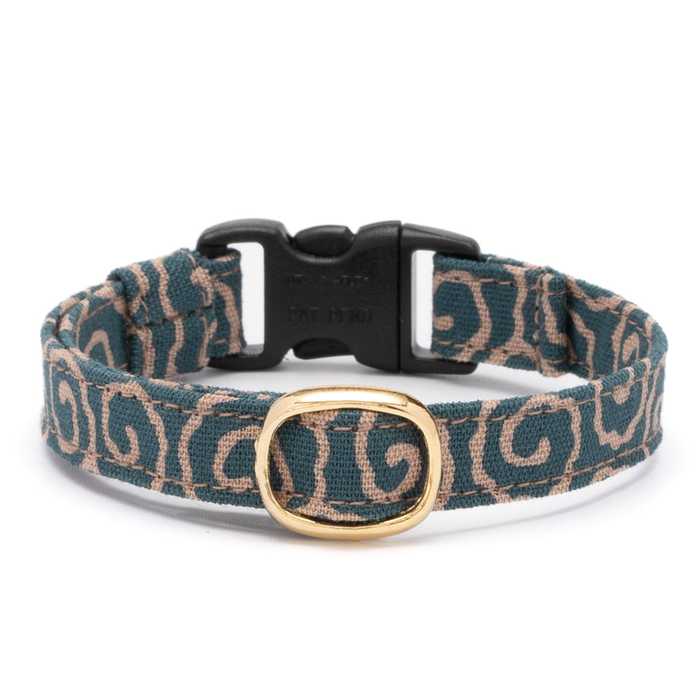 猫首輪 唐草うずまき 青緑