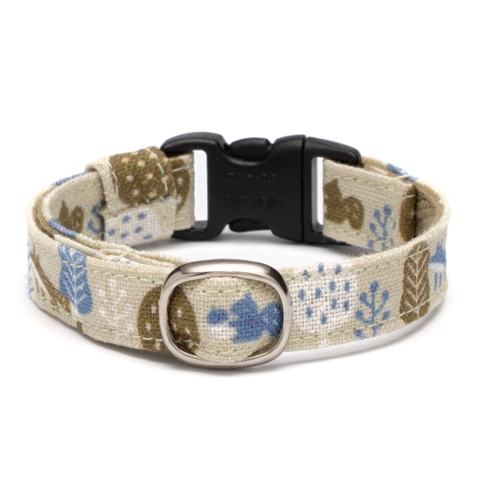 グラフィック猫首輪 森の小さな住人たち 〜キツネとリス〜 ブルー【限定モデル】