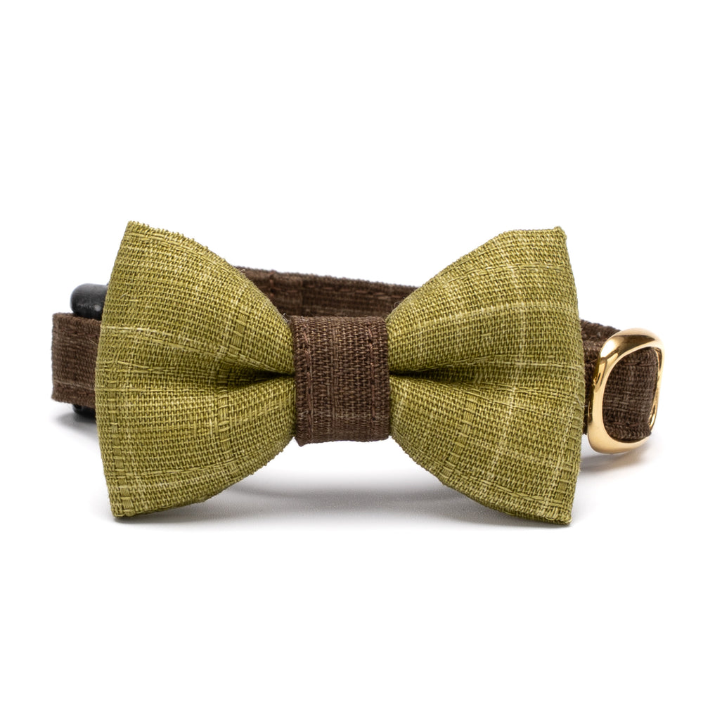 リボン付き猫首輪 彩かすり くるみ・抹茶リボン