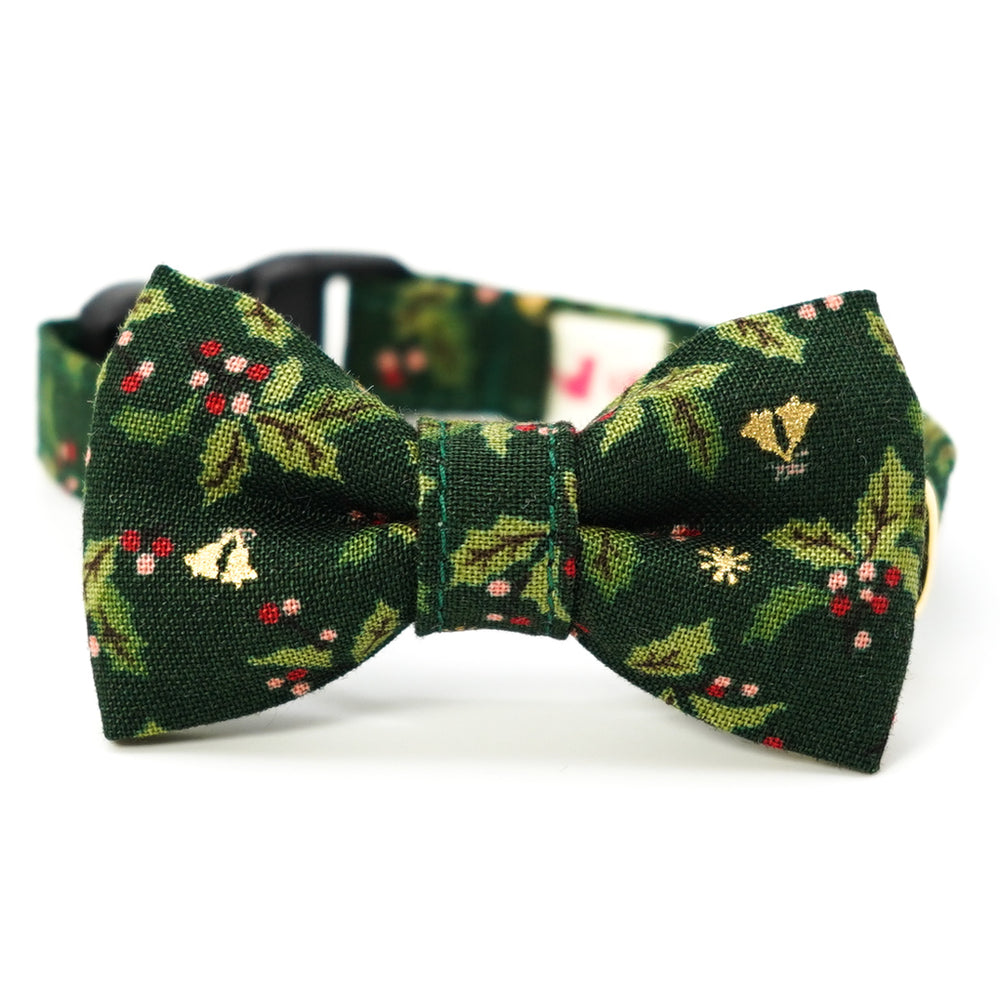 リボン付き猫首輪 クリスマス ヒイラギ グリーン