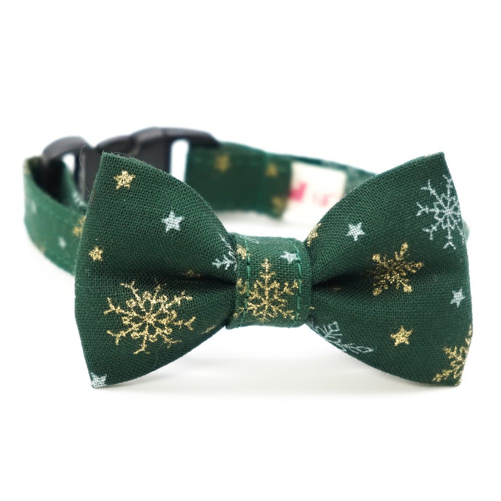 リボン付き猫首輪 クリスマス スノークリスタル グリーン