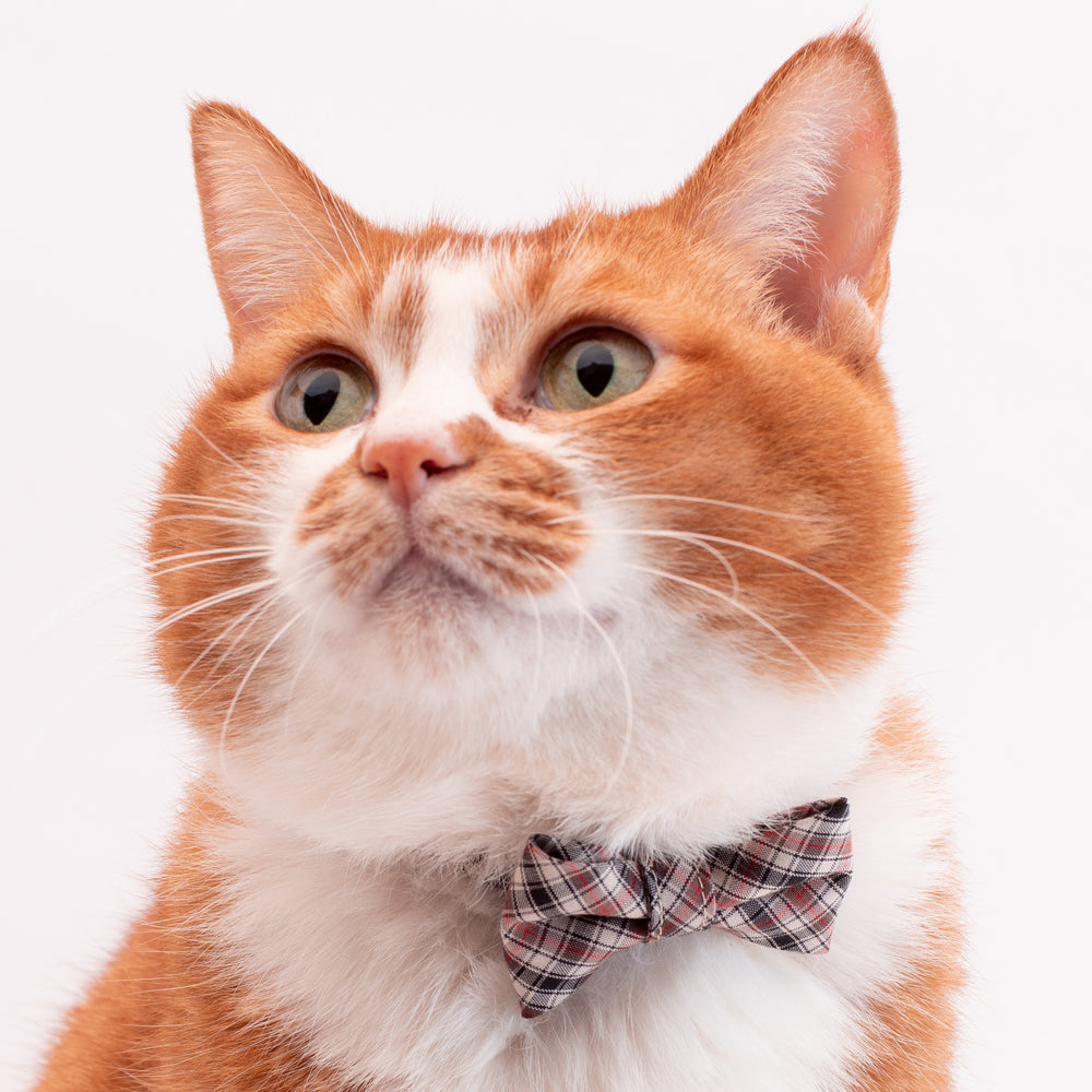 リボン付き猫首輪 播州織タータンチェック ブラウン