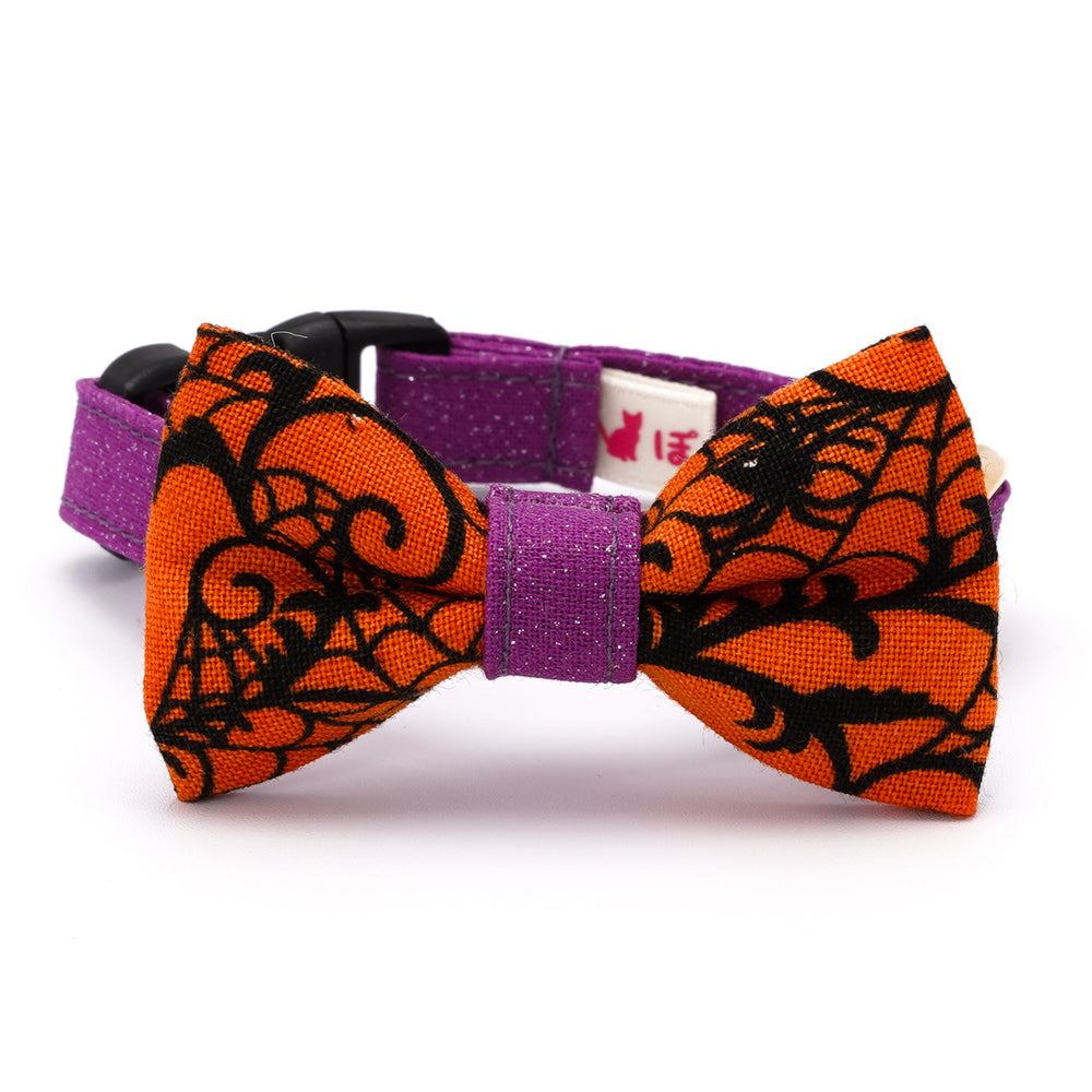 リボン付き猫首輪 ハロウィン スパイダー オレンジ
