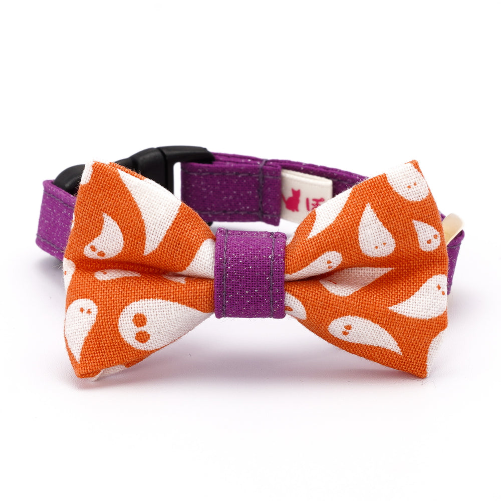 リボン付き猫首輪 ハロウィン ゴースト オレンジ