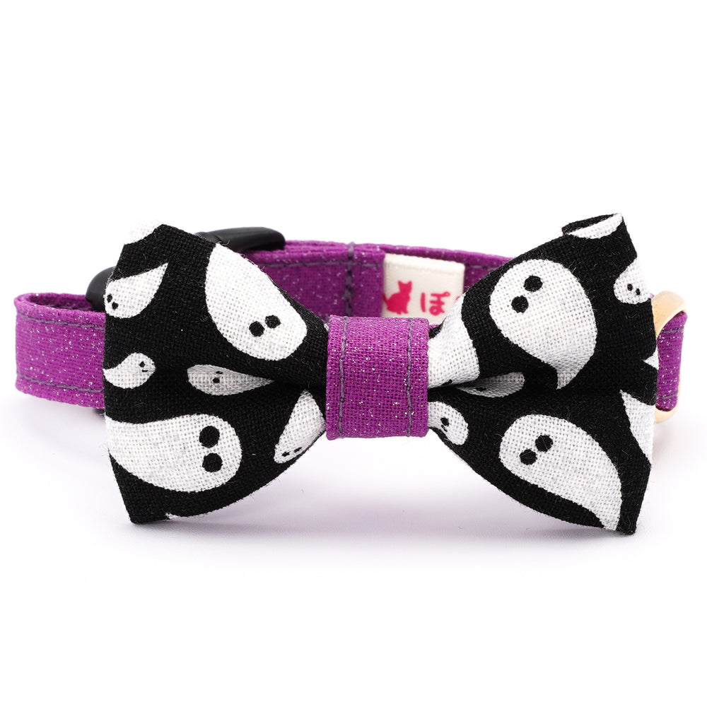 リボン付き猫首輪 ハロウィン ゴースト ブラック