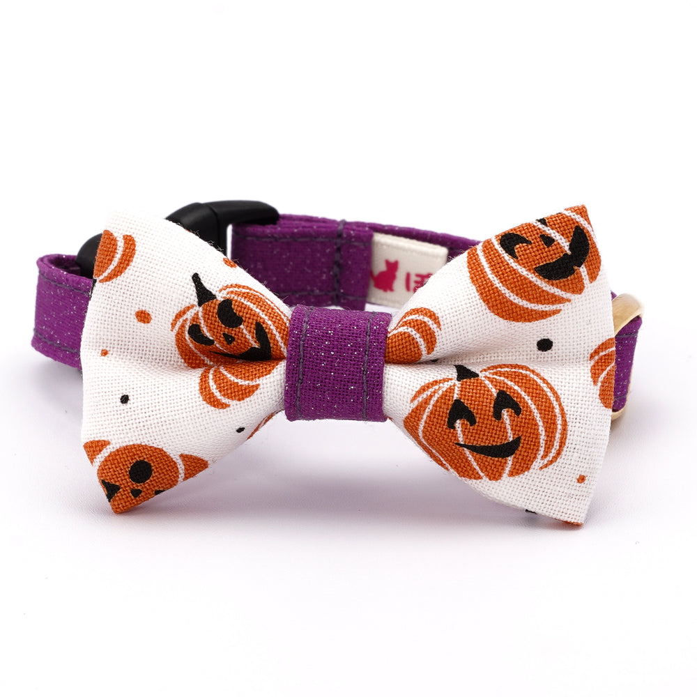 リボン付き猫首輪 ハロウィン ジャック・オー・ランタン ホワイト