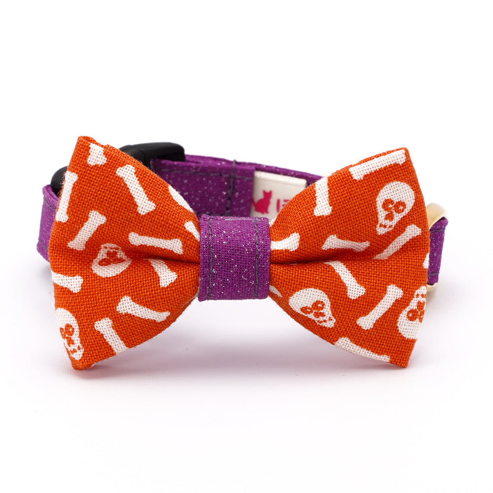 リボン付き猫首輪 ハロウィン スケルトン オレンジ