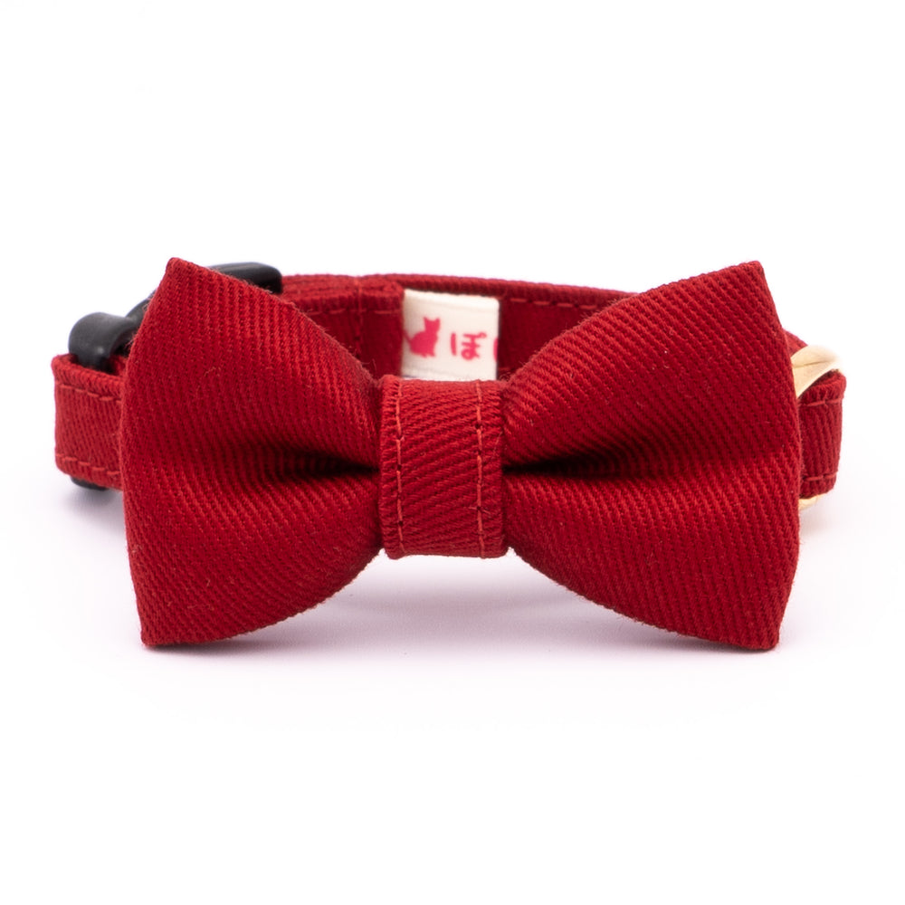 リボン付き猫首輪 MUJIコットンツイル ボルドー【限定色】
