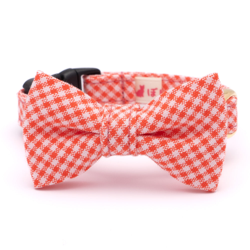 リボン付き猫首輪 ギンガムチェック(新タイプ) トマトレッド