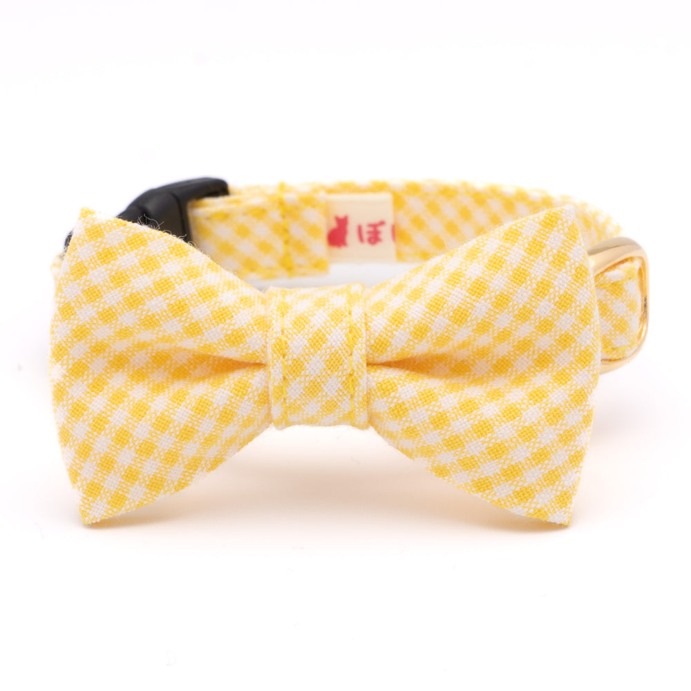 リボン付き猫首輪 ギンガムチェック(新タイプ) イエロー