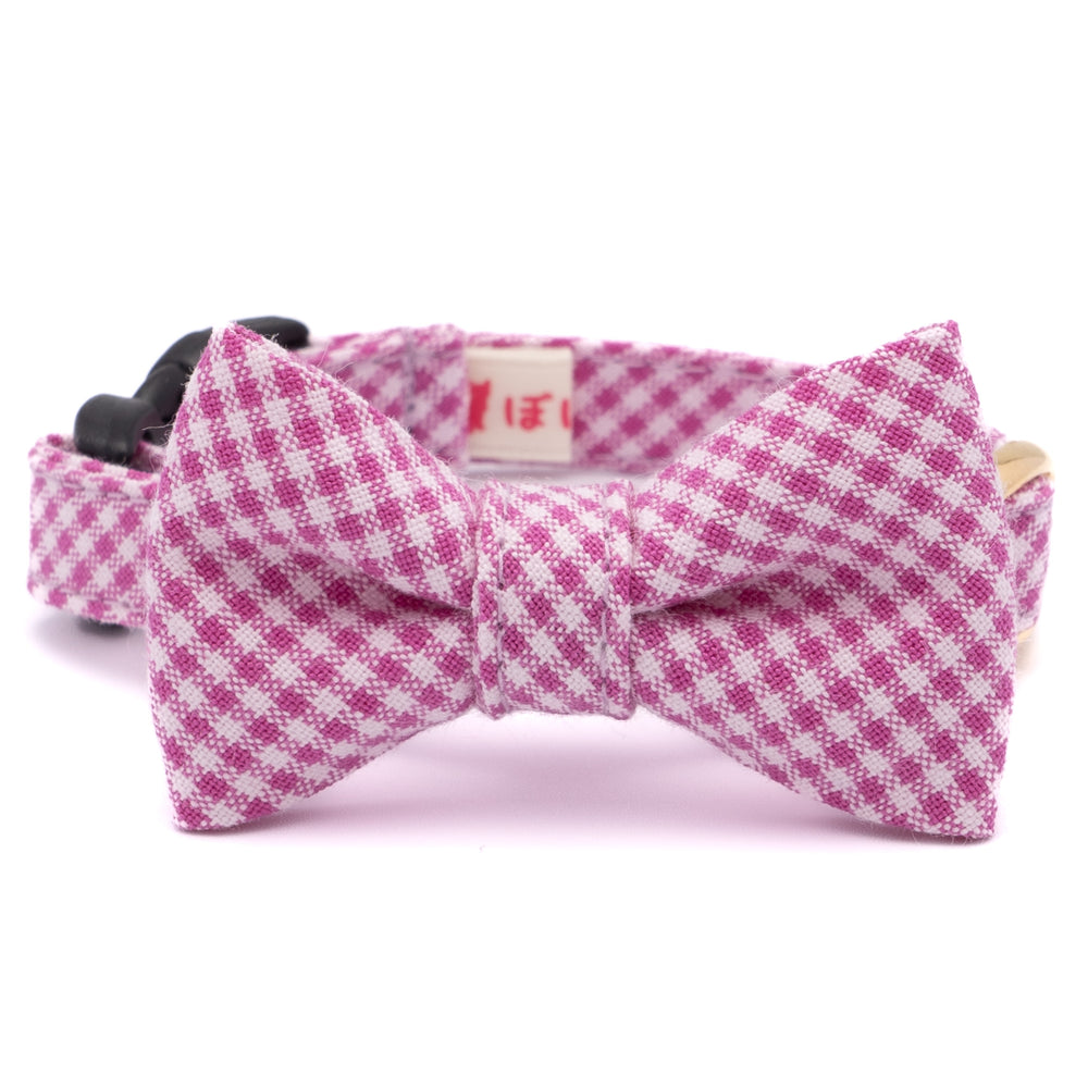 リボン付き猫首輪 ギンガムチェック(新タイプ) ラズベリー