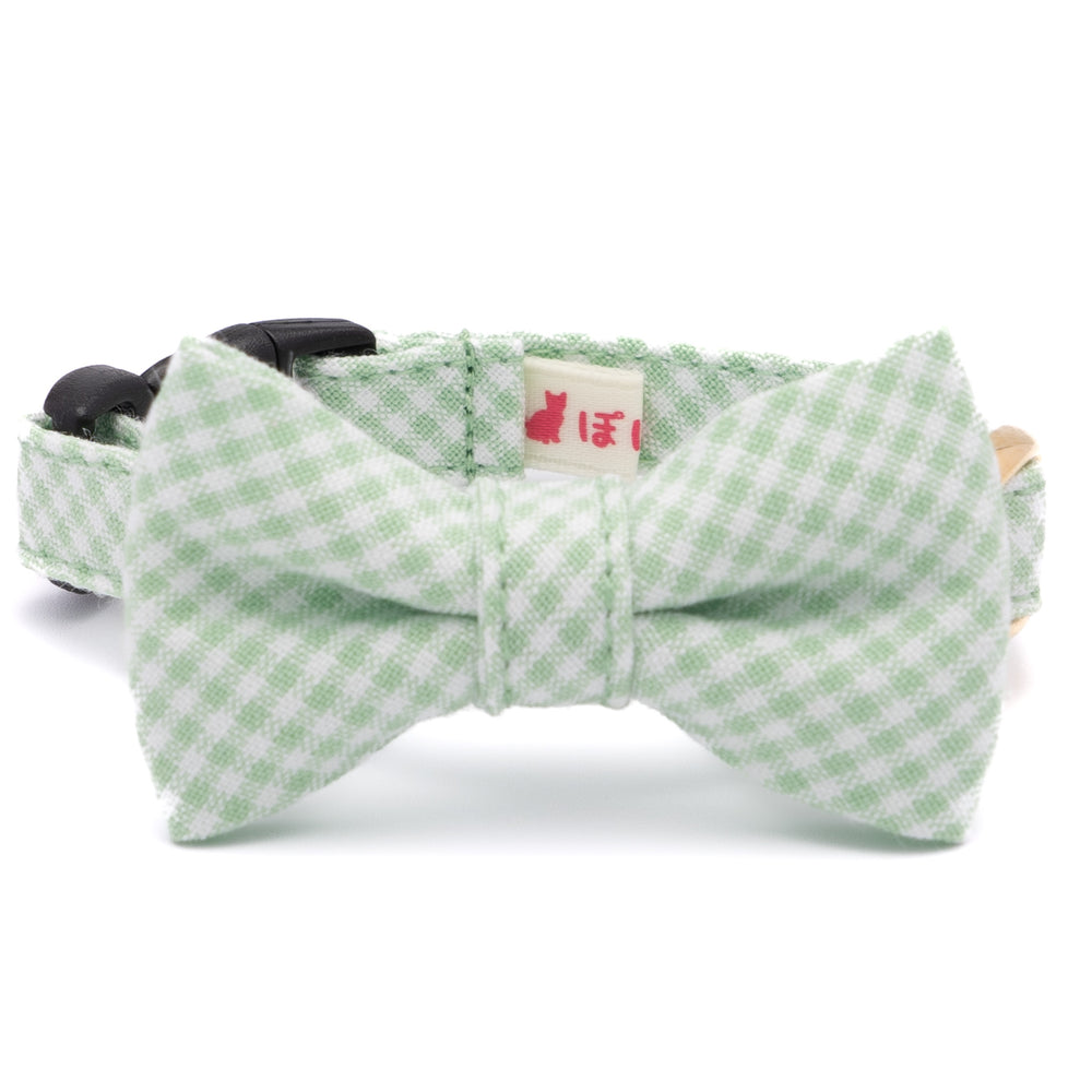 リボン付き猫首輪 ギンガムチェック(新タイプ) グリーン