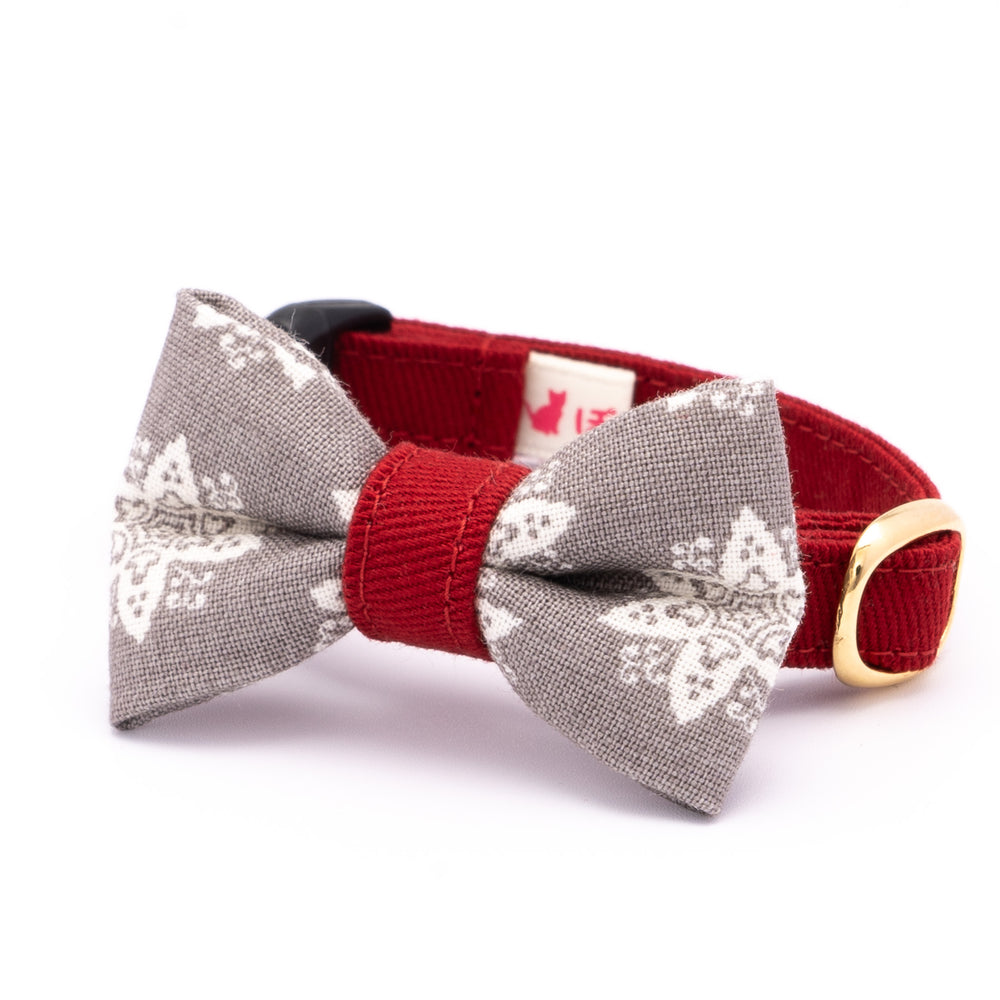 リボン付き猫首輪 クリスマス ヘキサゴン グレー