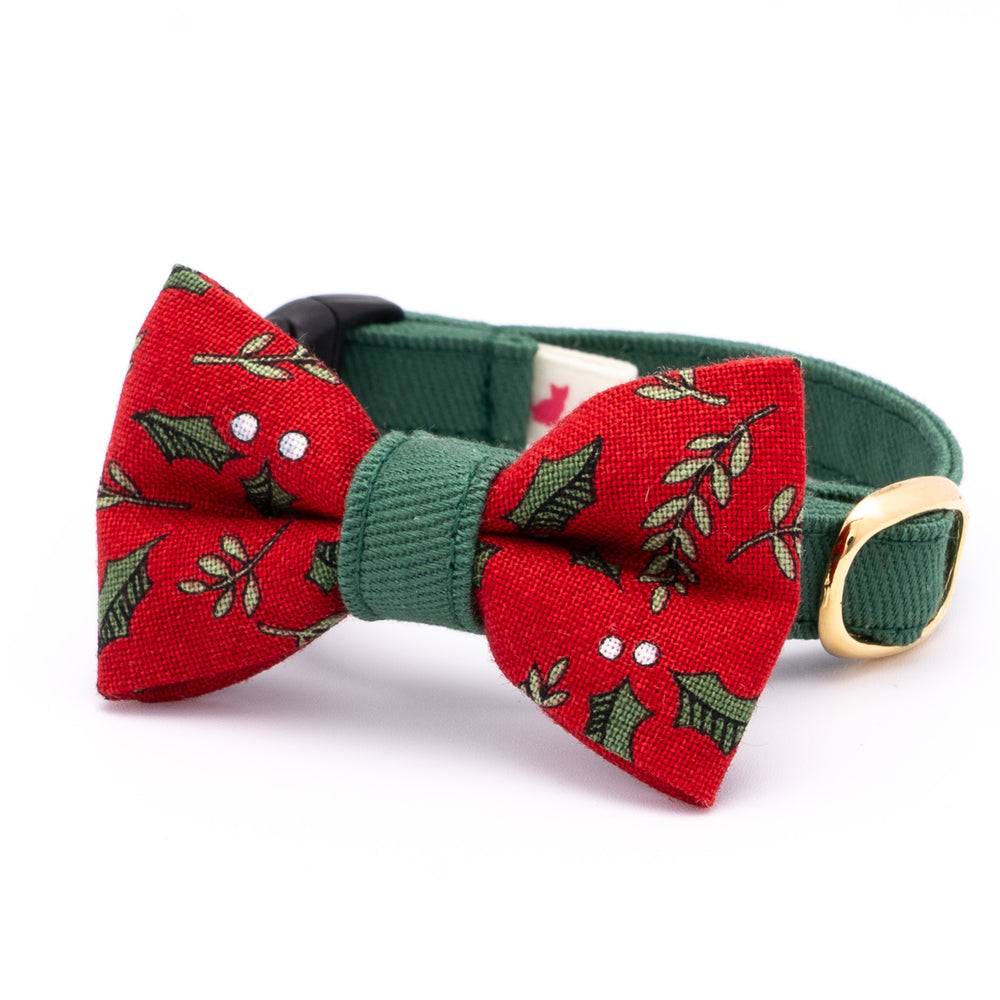 リボン付き猫首輪 クリスマス ホーリー レッド