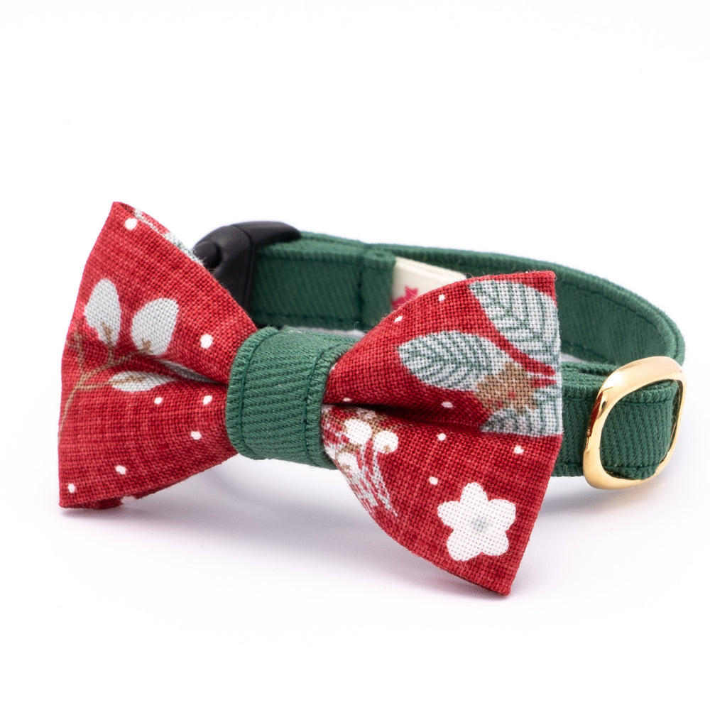 リボン付き猫首輪 クリスマス ボタニカル レッド