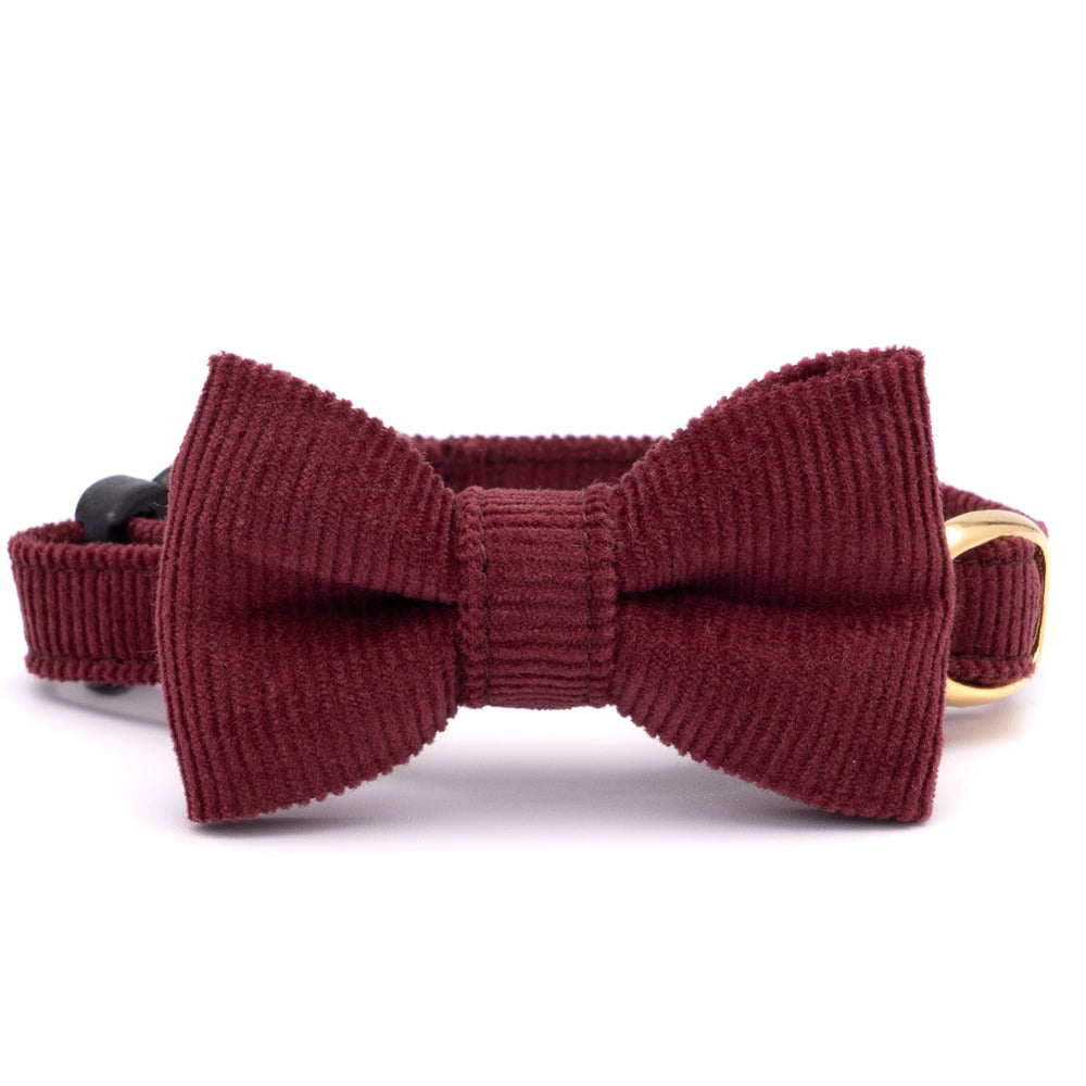 リボン付き猫首輪 コットンコーデュロイ ボルドー