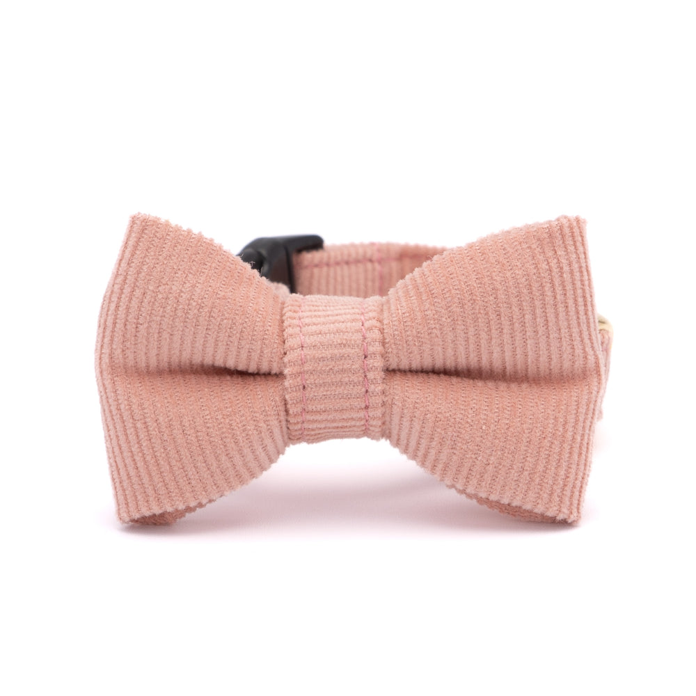 リボン付き猫首輪 コットンコーデュロイ ピンク