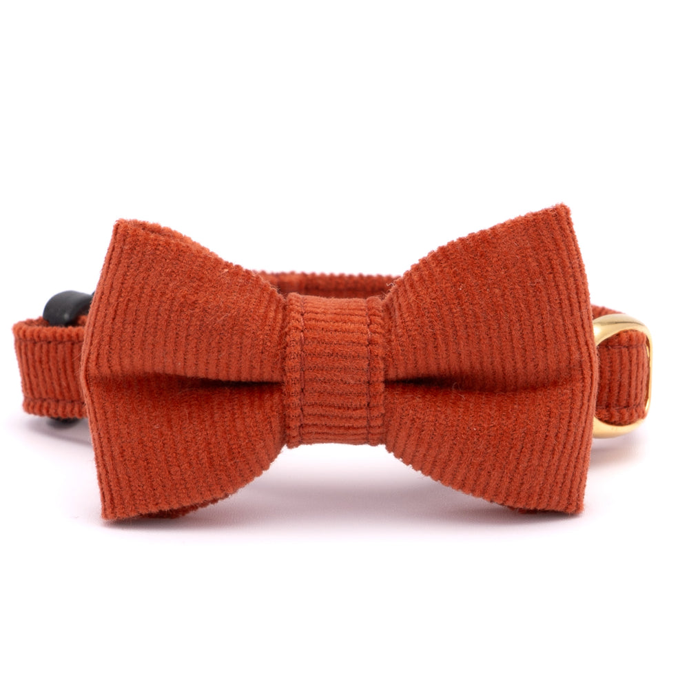 リボン付き猫首輪 コットンコーデュロイ オレンジ
