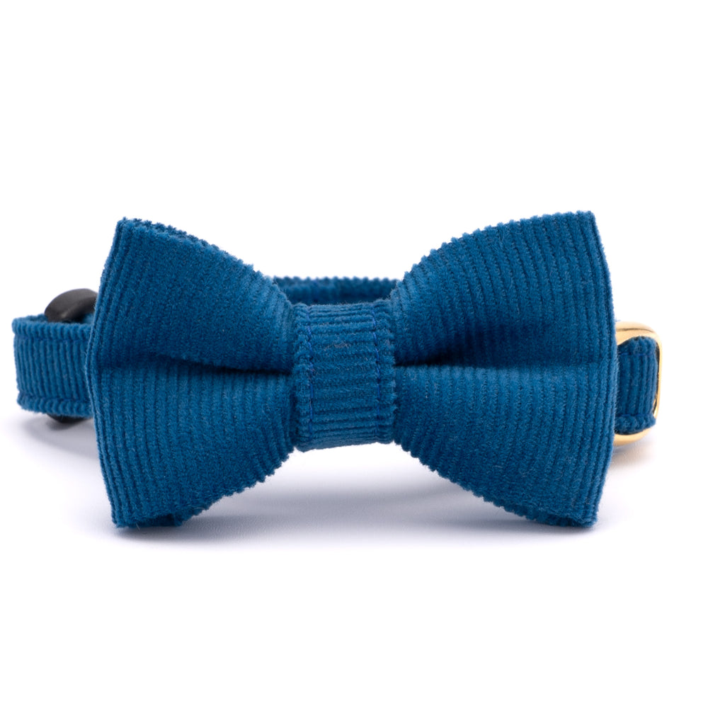 リボン付き猫首輪 コットンコーデュロイ ブルー