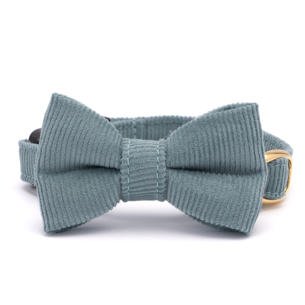 リボン付き猫首輪 コットンコーデュロイ ブルーグリーン