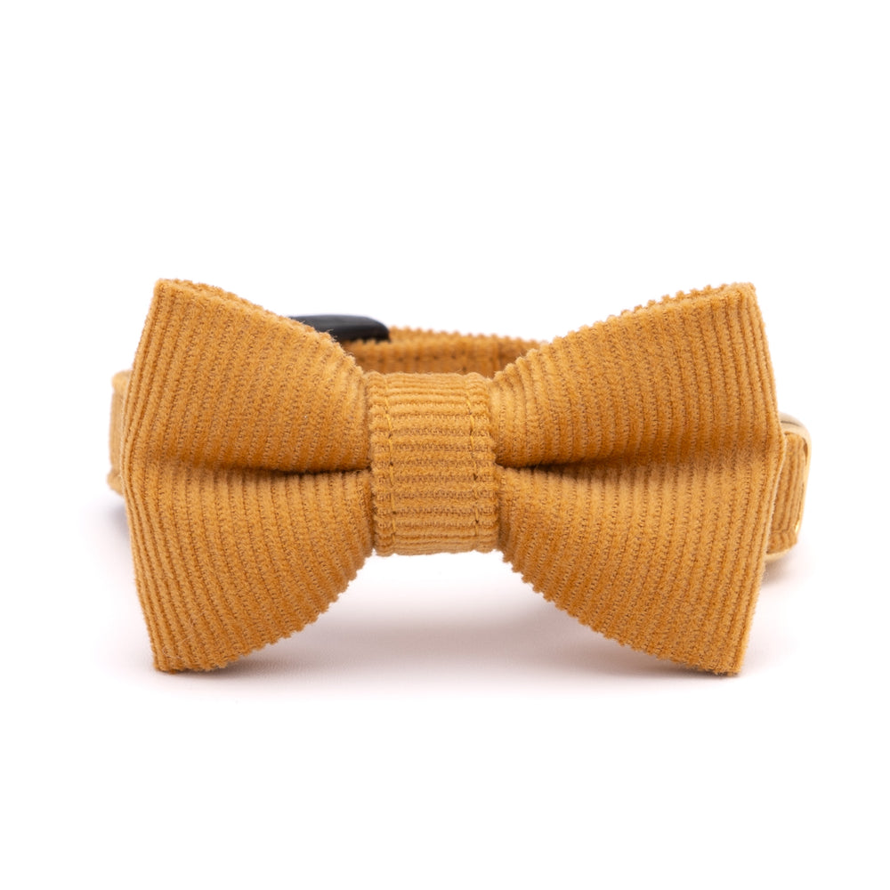 リボン付き猫首輪 コットンコーデュロイ イエロー
