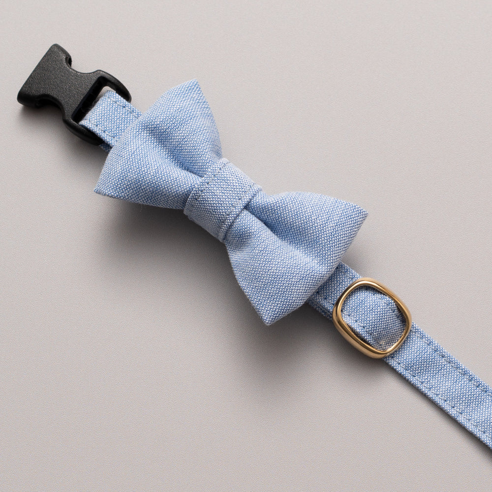 リボン付き猫首輪 汚れに強い撥水撥油 マリンブルー