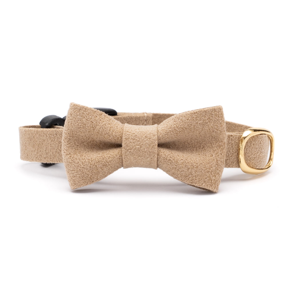 リボン付き猫首輪 引っ掻きに強いスエード サンドベージュ