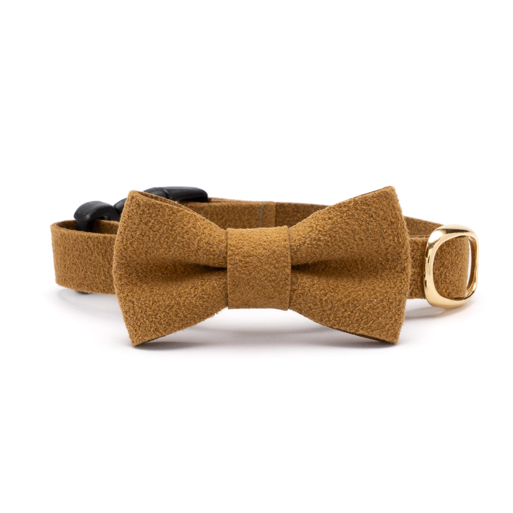 リボン付き猫首輪 引っ掻きに強いスエード マスタード