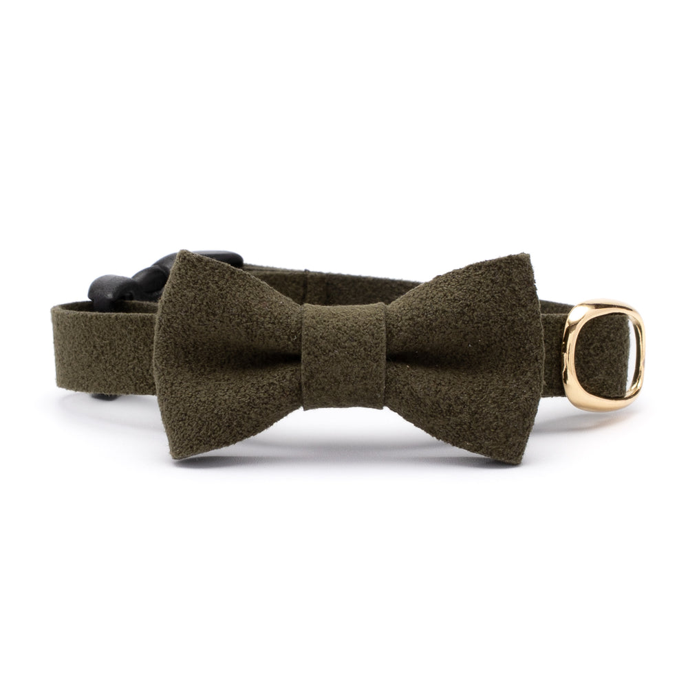 リボン付き猫首輪 引っ掻きに強いスエード オリーブ