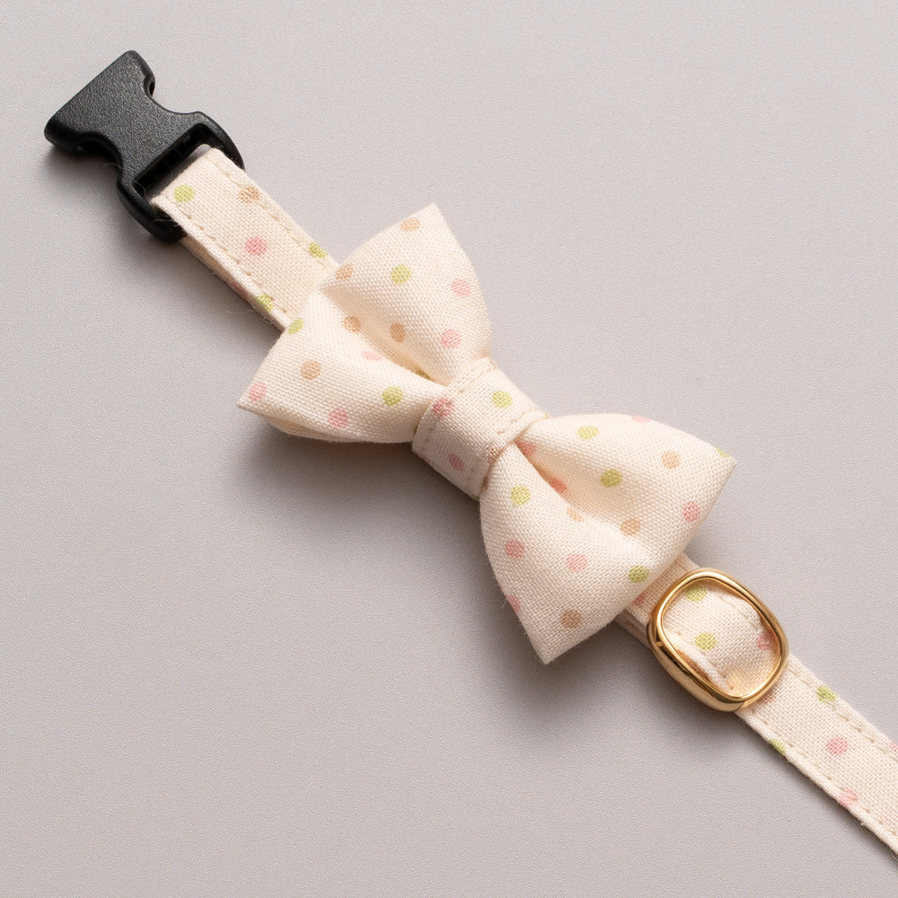 リボン付き猫首輪 ドット マルチカラー アイボリー【限定色】