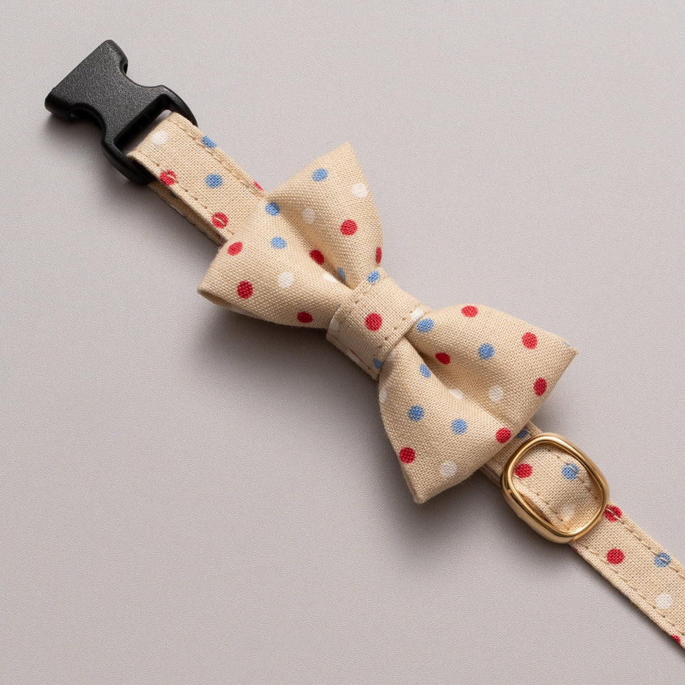 リボン付き猫首輪 ドット マルチカラー ベージュ【限定色】