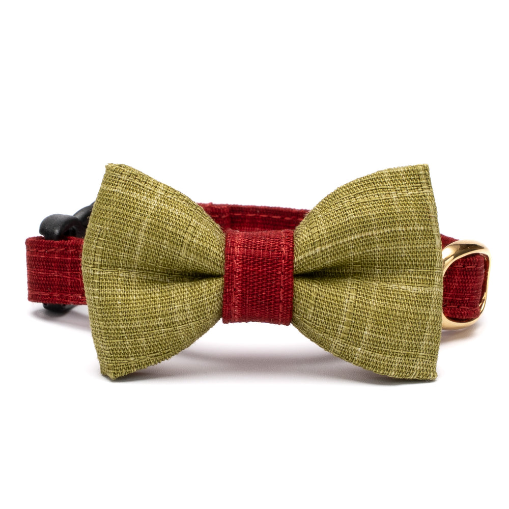 リボン付き猫首輪 彩かすり あかね・抹茶リボン