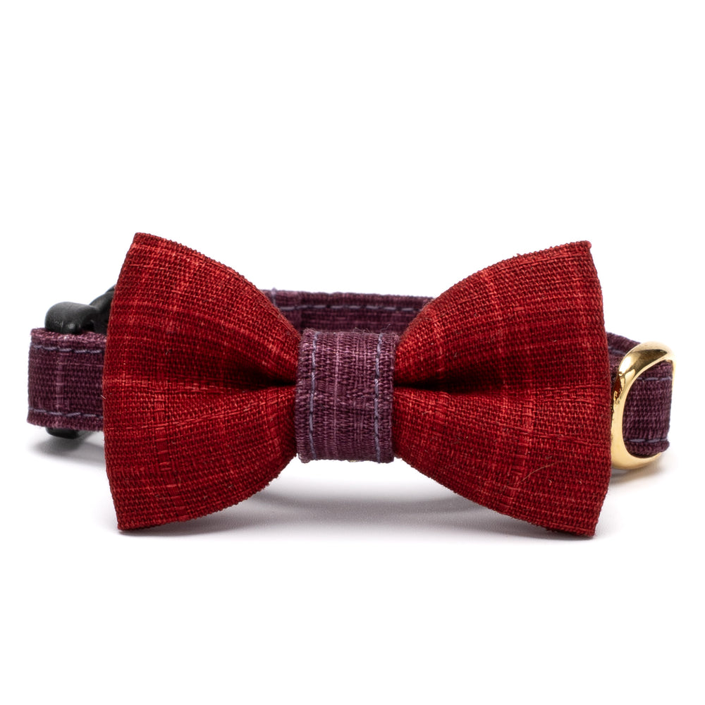 リボン付き猫首輪 彩かすり むらさき・あかねリボン