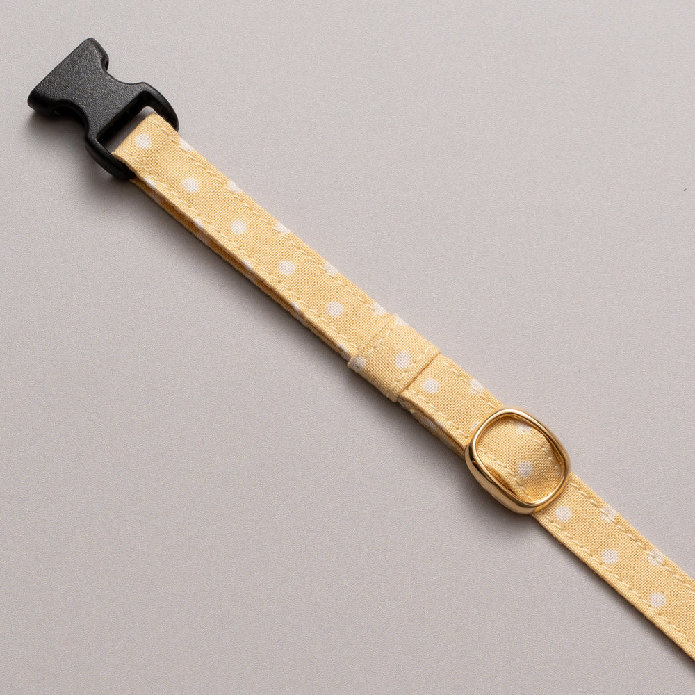 シンプルで飽きのこないドット柄が魅力の、ノーマルタイプの猫首輪です。柔らかなコットン100%素材を使用し、薄手で軽やかだから首への負担も少なく、子猫ちゃんからシニア猫ちゃんまで安心してご使用いただけます。毎日つけても嫌がりにくいやさしい着け心地で、猫ちゃんの肌に寄り添う仕上がりに。気分に合わせて選べる豊富なカラーバリエーションも嬉しいポイント。さりげないおしゃれを楽しみたい方におすすめです。