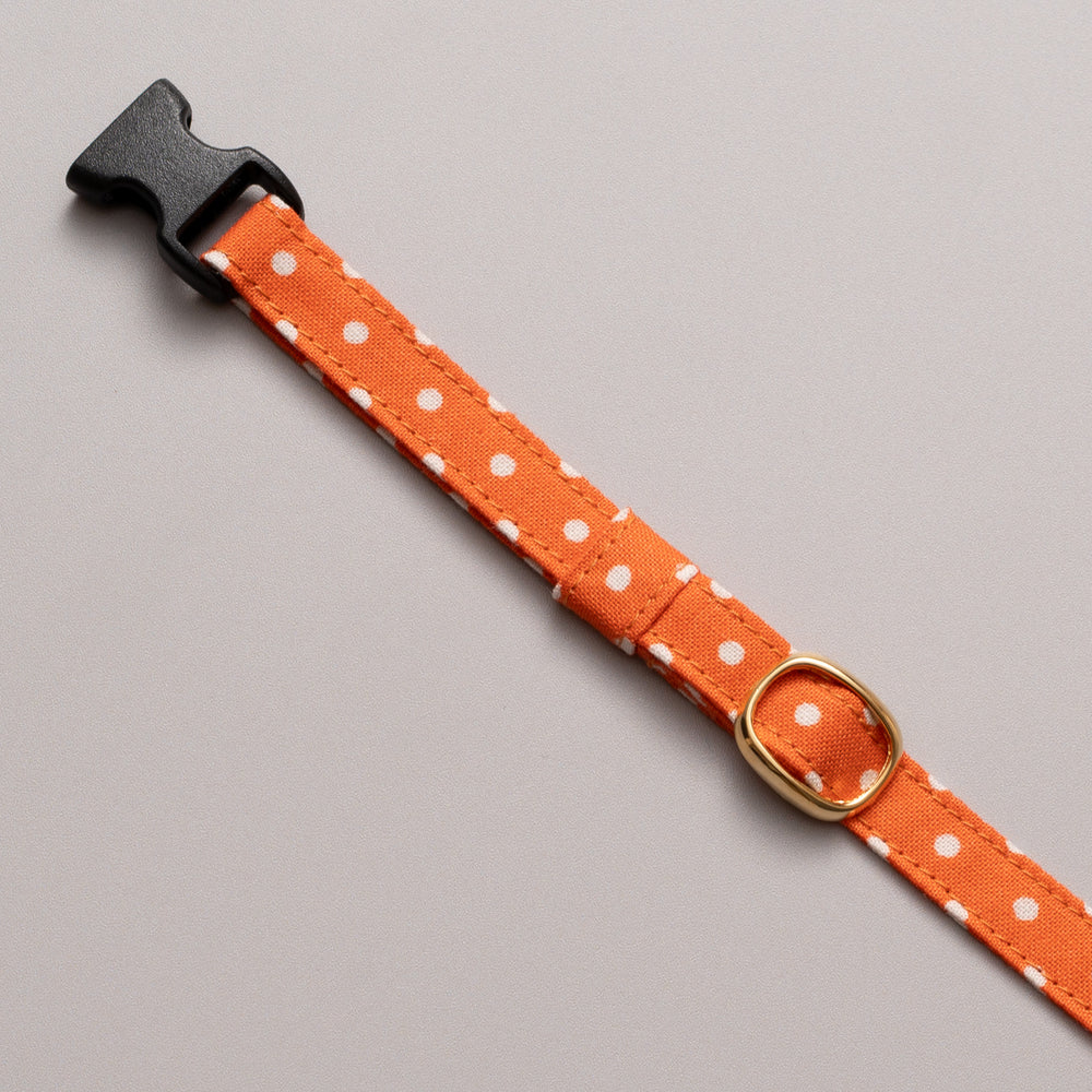 シンプルで飽きのこないドット柄が魅力の、ノーマルタイプの猫首輪です。柔らかなコットン100%素材を使用し、薄手で軽やかだから首への負担も少なく、子猫ちゃんからシニア猫ちゃんまで安心してご使用いただけます。毎日つけても嫌がりにくいやさしい着け心地で、猫ちゃんの肌に寄り添う仕上がりに。気分に合わせて選べる豊富なカラーバリエーションも嬉しいポイント。さりげないおしゃれを楽しみたい方におすすめです。