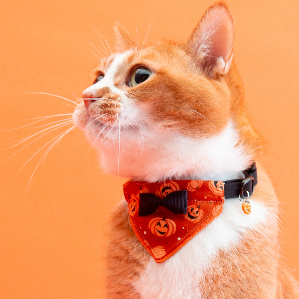 バンダナ付き猫首輪 ハロウィンパーティー ジャック・オー・ランタン/オレンジ