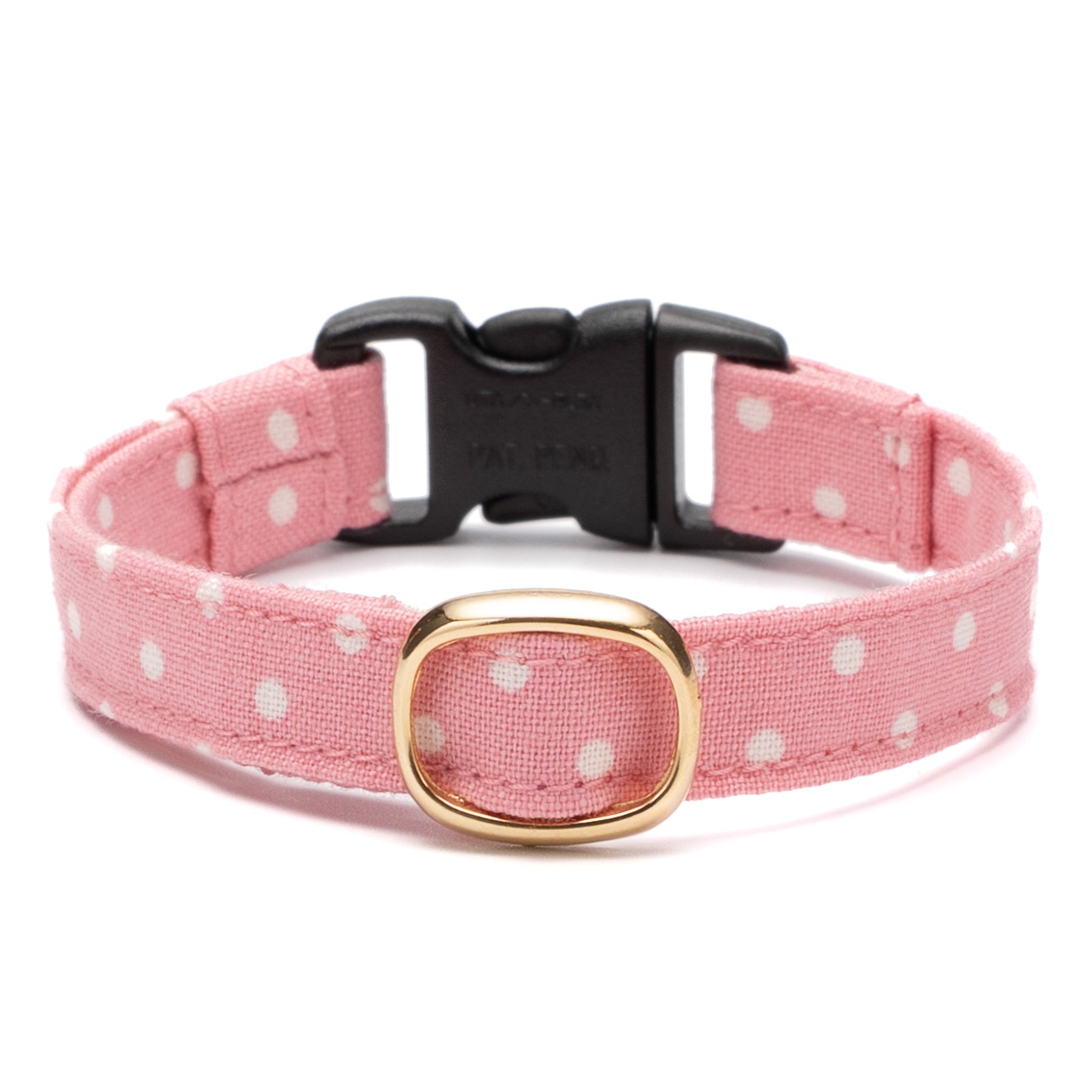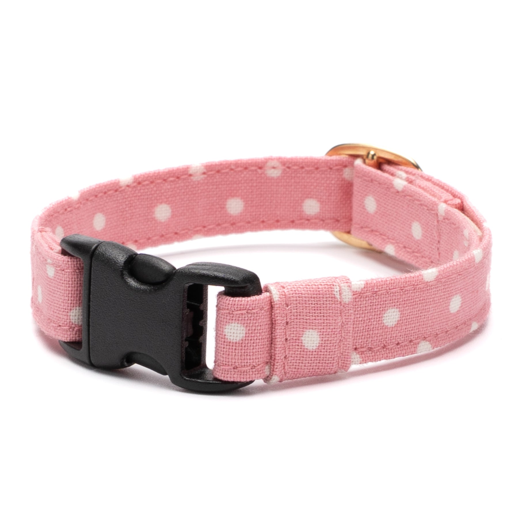 シンプルで飽きのこないドット柄が魅力の、ノーマルタイプの猫首輪です。柔らかなコットン100%素材を使用し、薄手で軽やかだから首への負担も少なく、子猫ちゃんからシニア猫ちゃんまで安心してご使用いただけます。毎日つけても嫌がりにくいやさしい着け心地で、猫ちゃんの肌に寄り添う仕上がりに。気分に合わせて選べる豊富なカラーバリエーションも嬉しいポイント。さりげないおしゃれを楽しみたい方におすすめです。