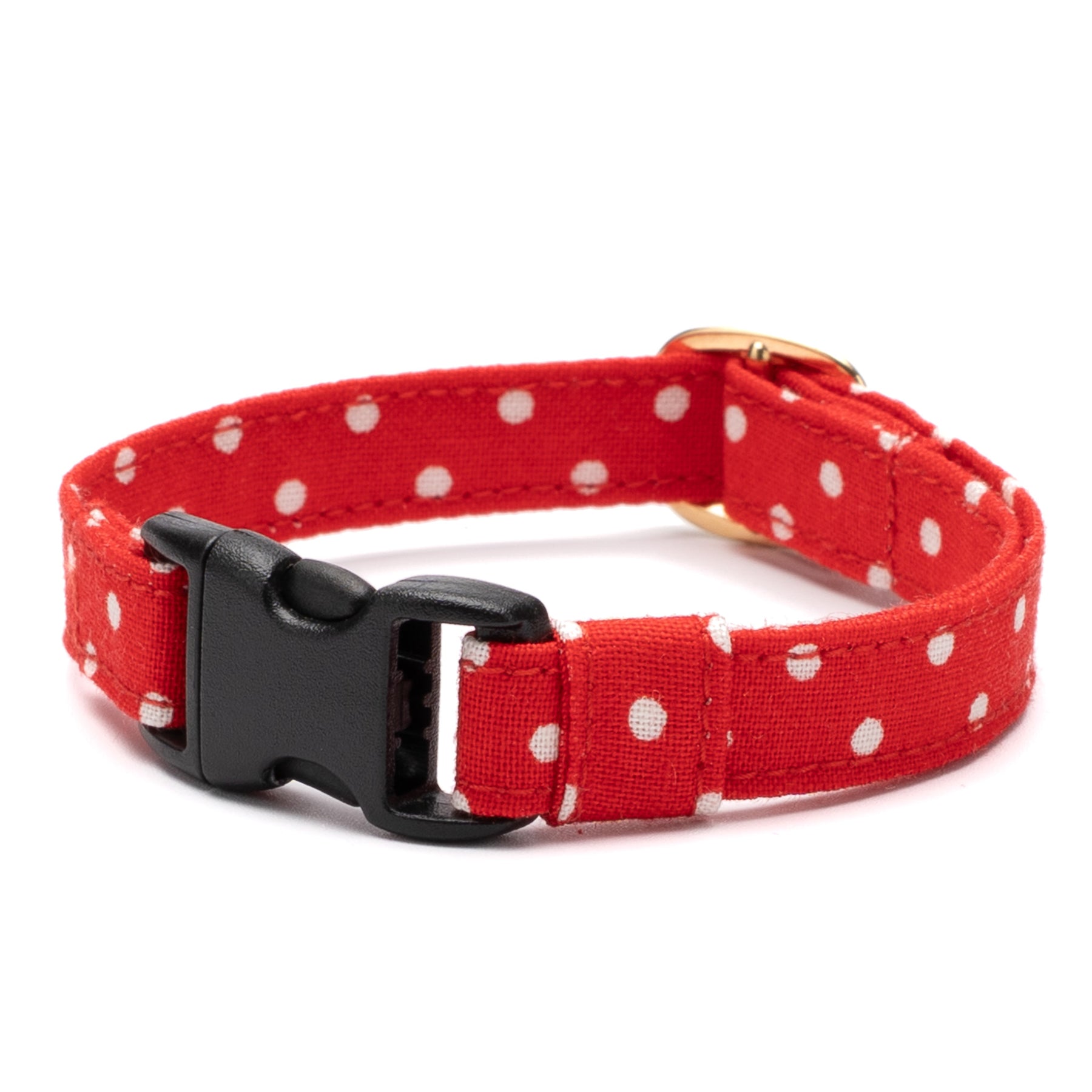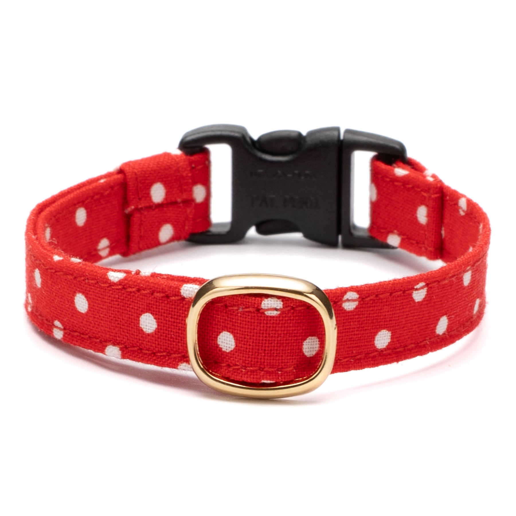 シンプルで飽きのこないドット柄が魅力の、ノーマルタイプの猫首輪です。柔らかなコットン100%素材を使用し、薄手で軽やかだから首への負担も少なく、子猫ちゃんからシニア猫ちゃんまで安心してご使用いただけます。毎日つけても嫌がりにくいやさしい着け心地で、猫ちゃんの肌に寄り添う仕上がりに。気分に合わせて選べる豊富なカラーバリエーションも嬉しいポイント。さりげないおしゃれを楽しみたい方におすすめです。