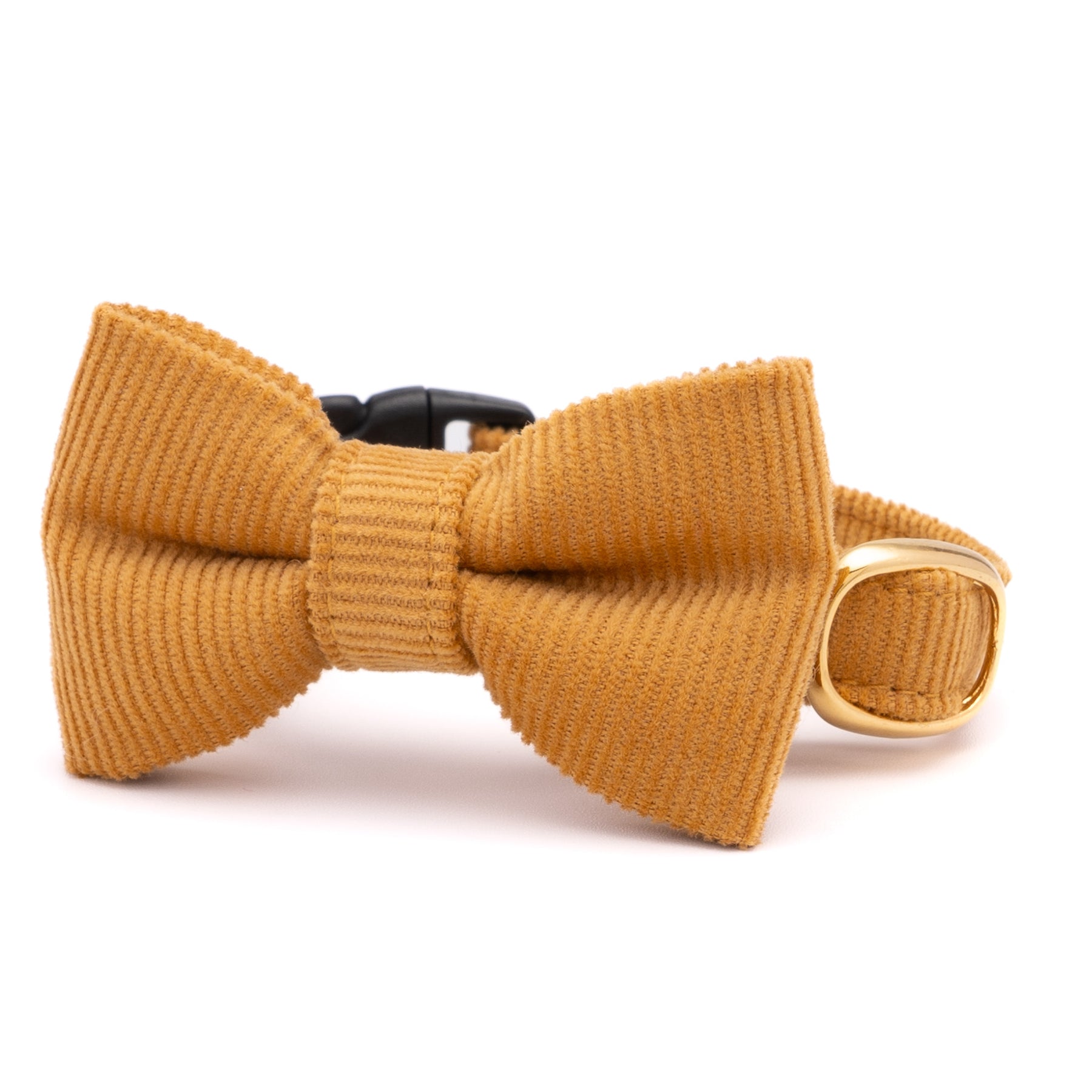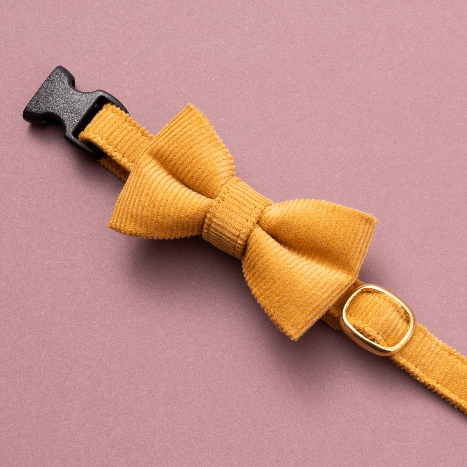 リボン付き猫首輪 コットンコーデュロイ イエロー