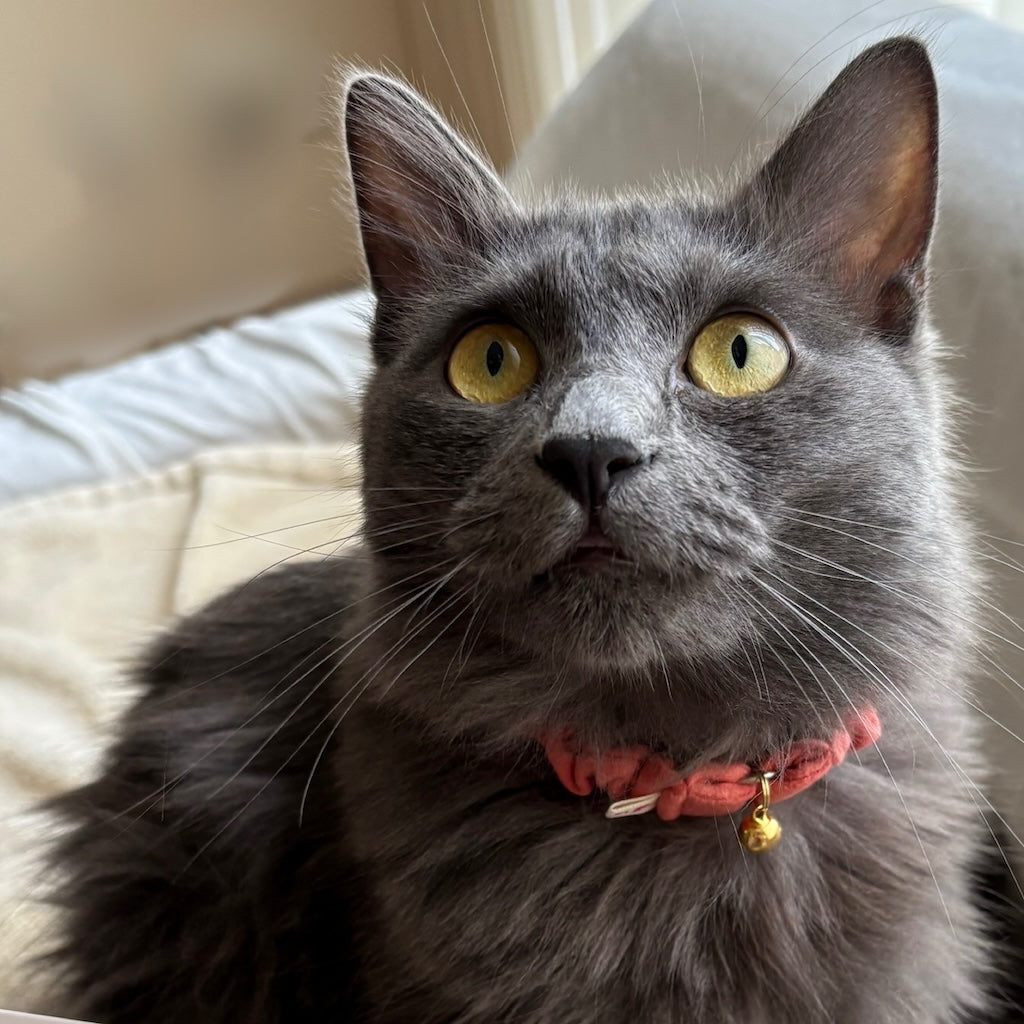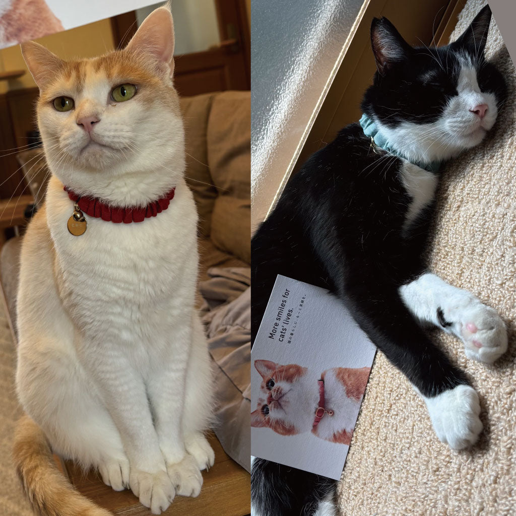 ぽぽねこさんの首輪は今回3度目のお迎えです。デザインの可愛さに加えて生地が柔らかいので、おハゲができやすいうちの子にも優しいところが気に入っています。