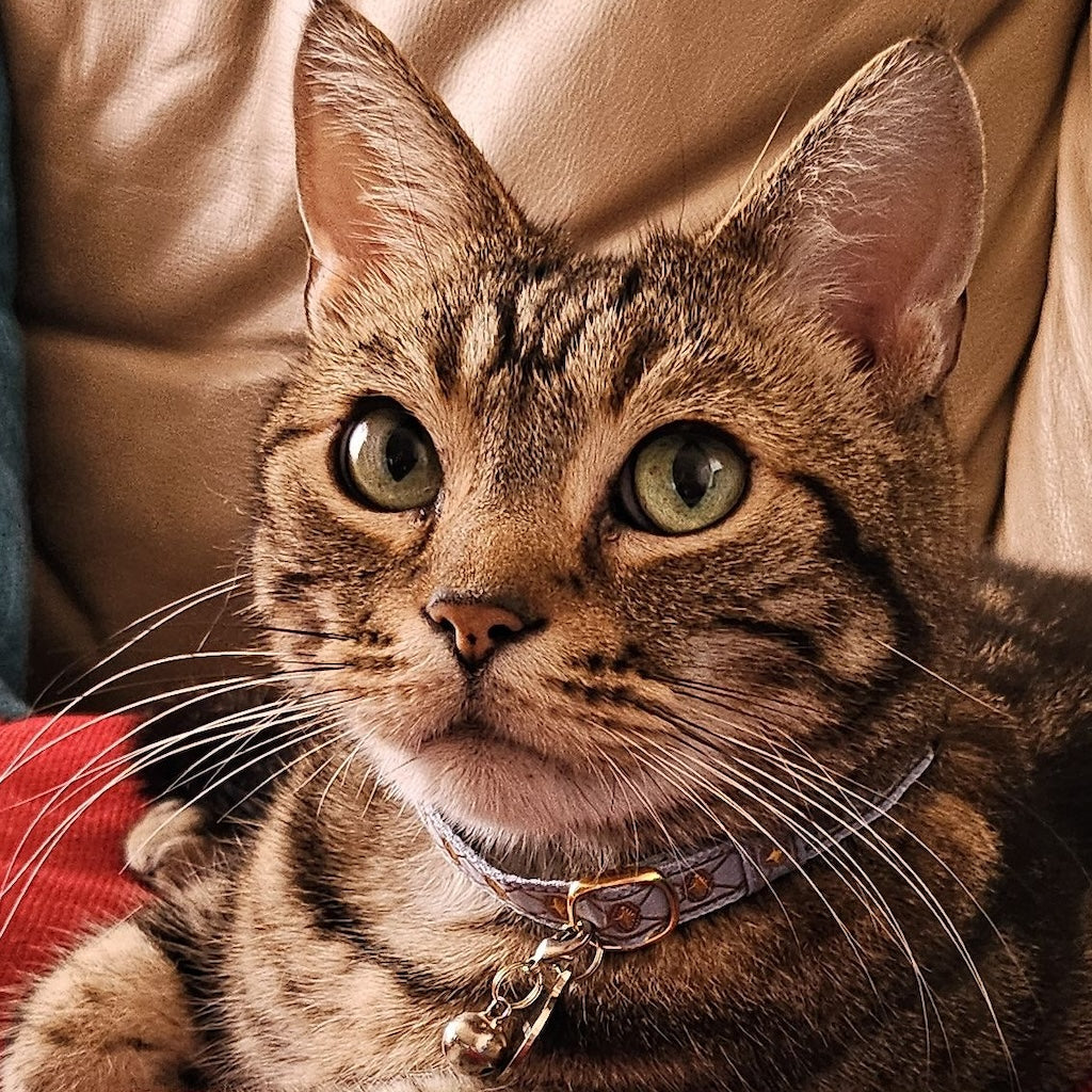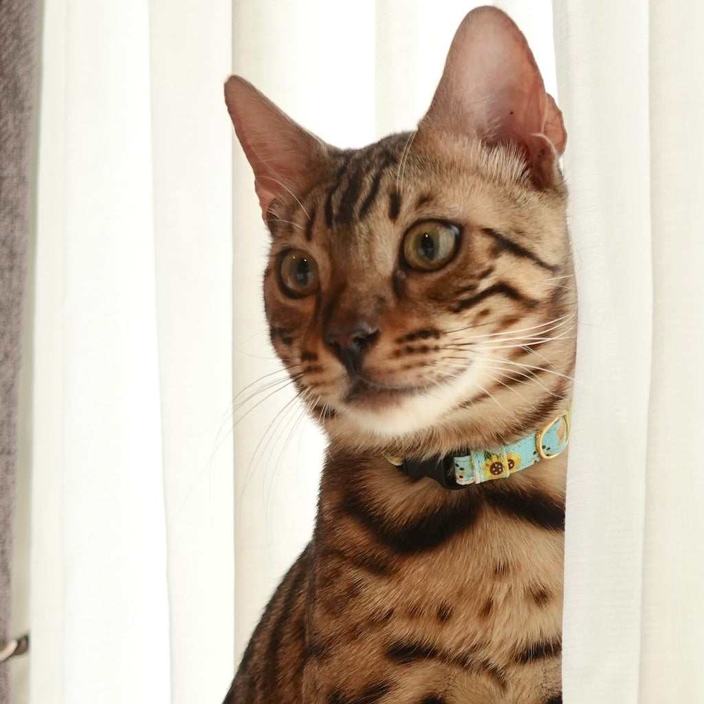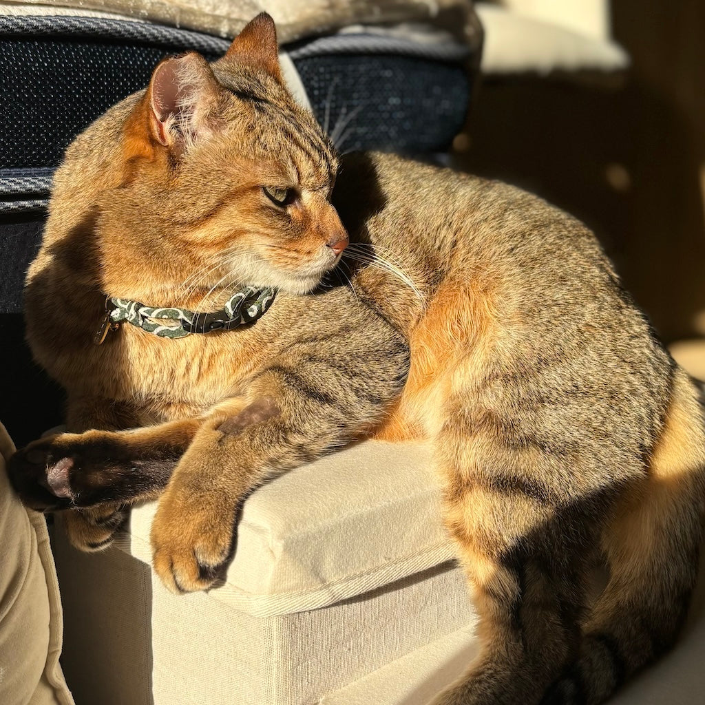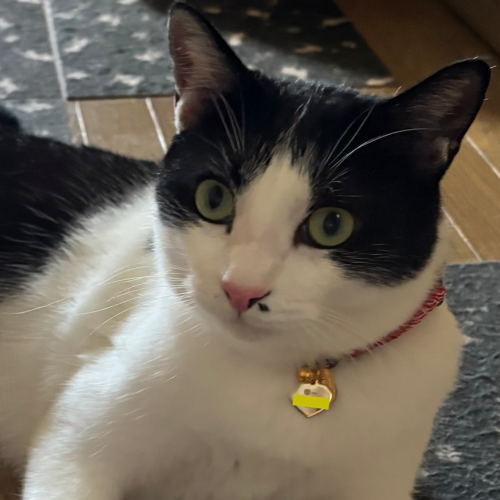 元々首輪を嫌がらない猫でしたが、市販の首輪のデザインがピンと来ず、使用していませんでした。しかし、ぽぽねこではたくさんのデザイン、形状があって、見ているだけでも楽しめます!バンダナ付きの首輪に一目惚れし、購入。三角の部分が背中にまわっている時もありますが、ずっとつけてくれています。季節で変えるのも良いなと思いました。